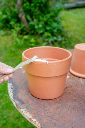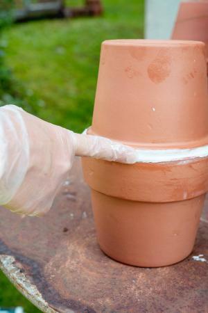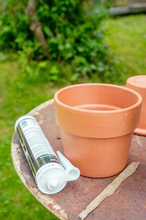 - Bestreiche den Rand des anderen Tongefäßes großzügig mit Silikon.